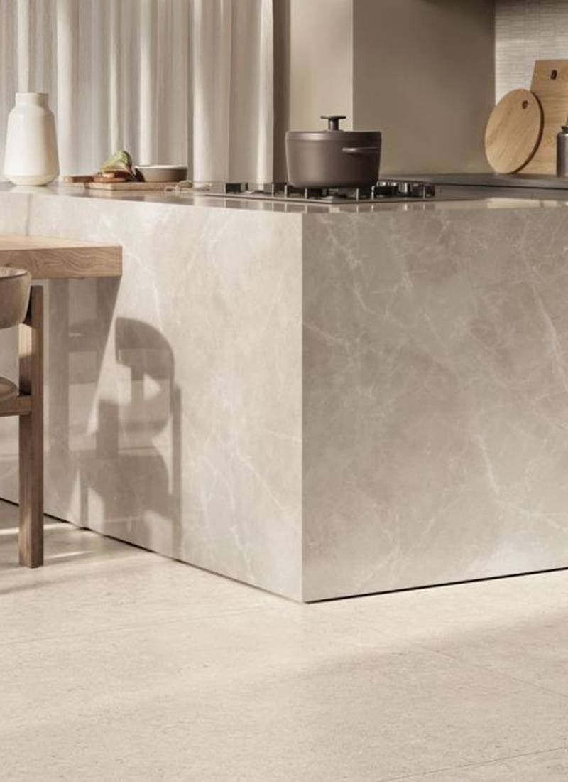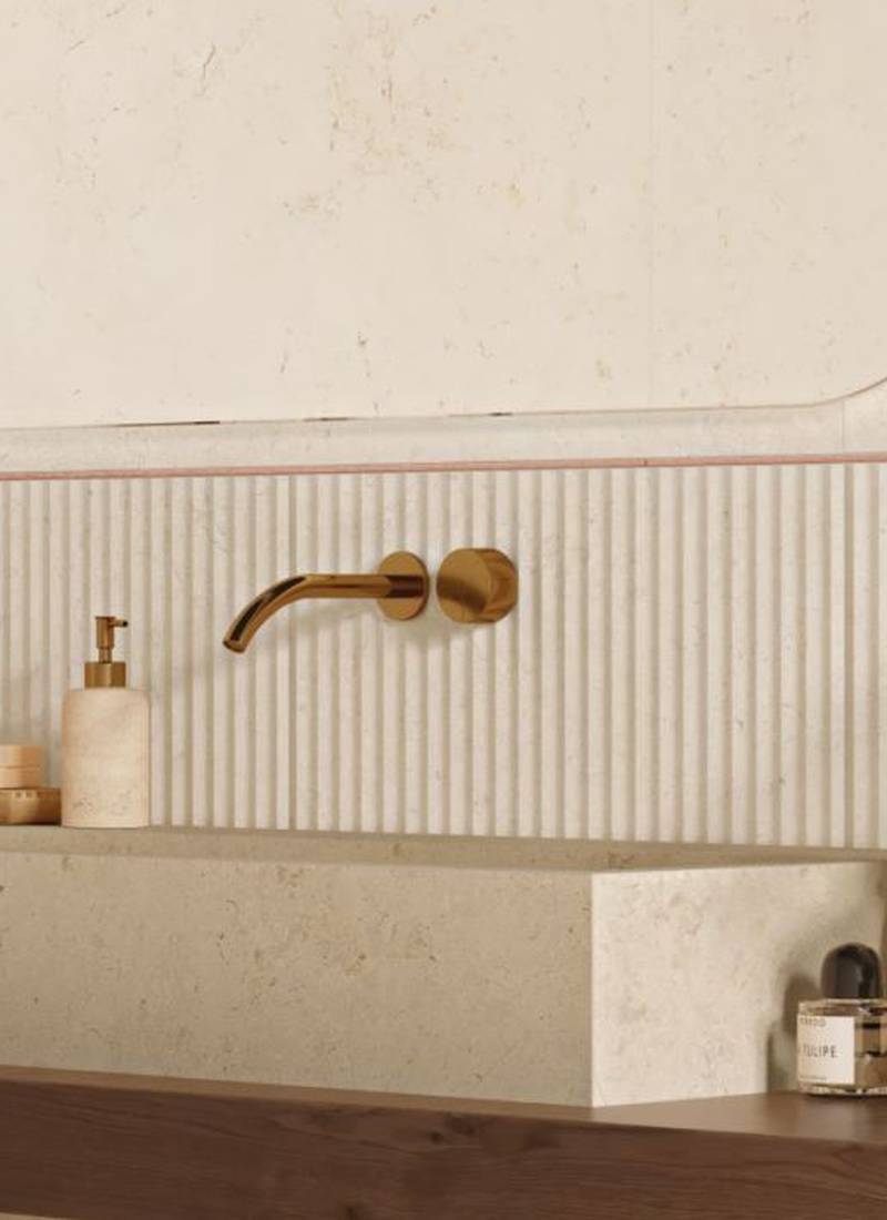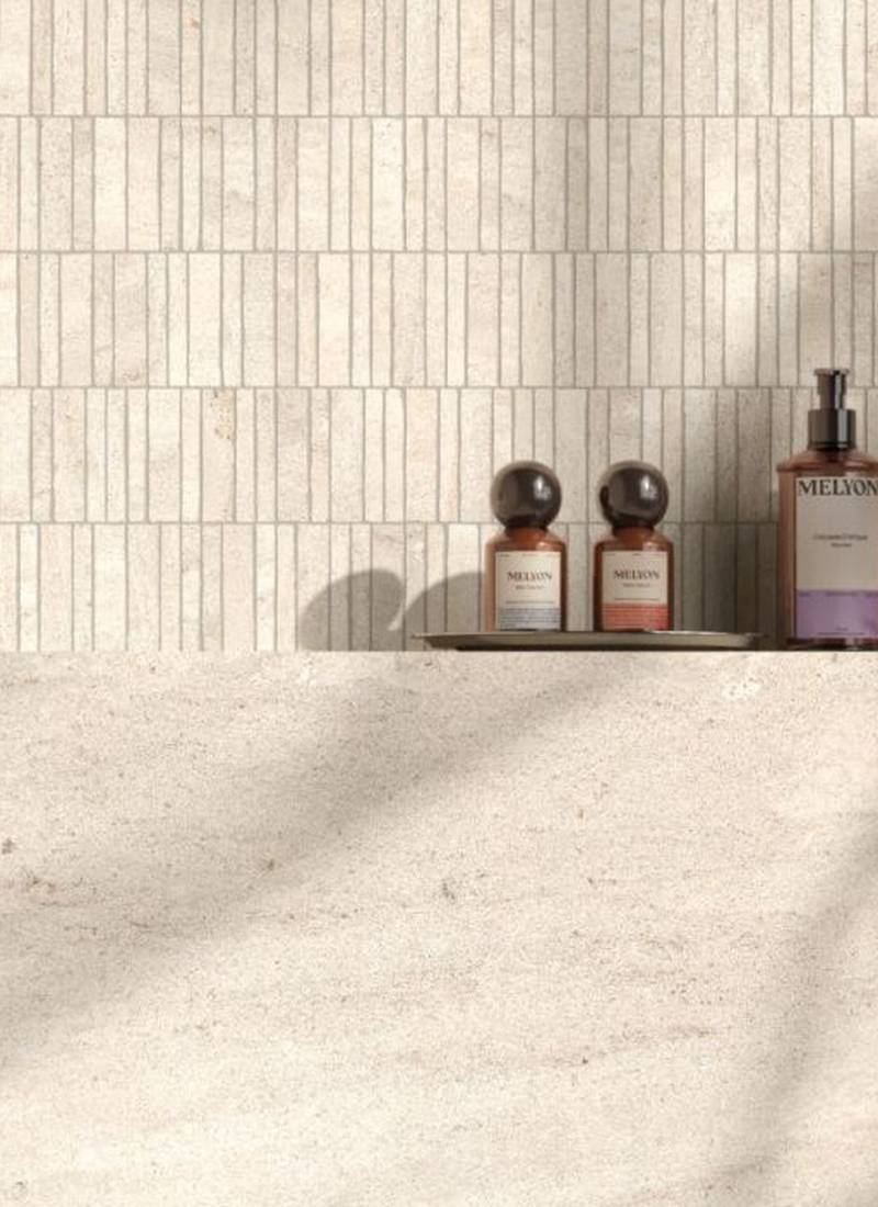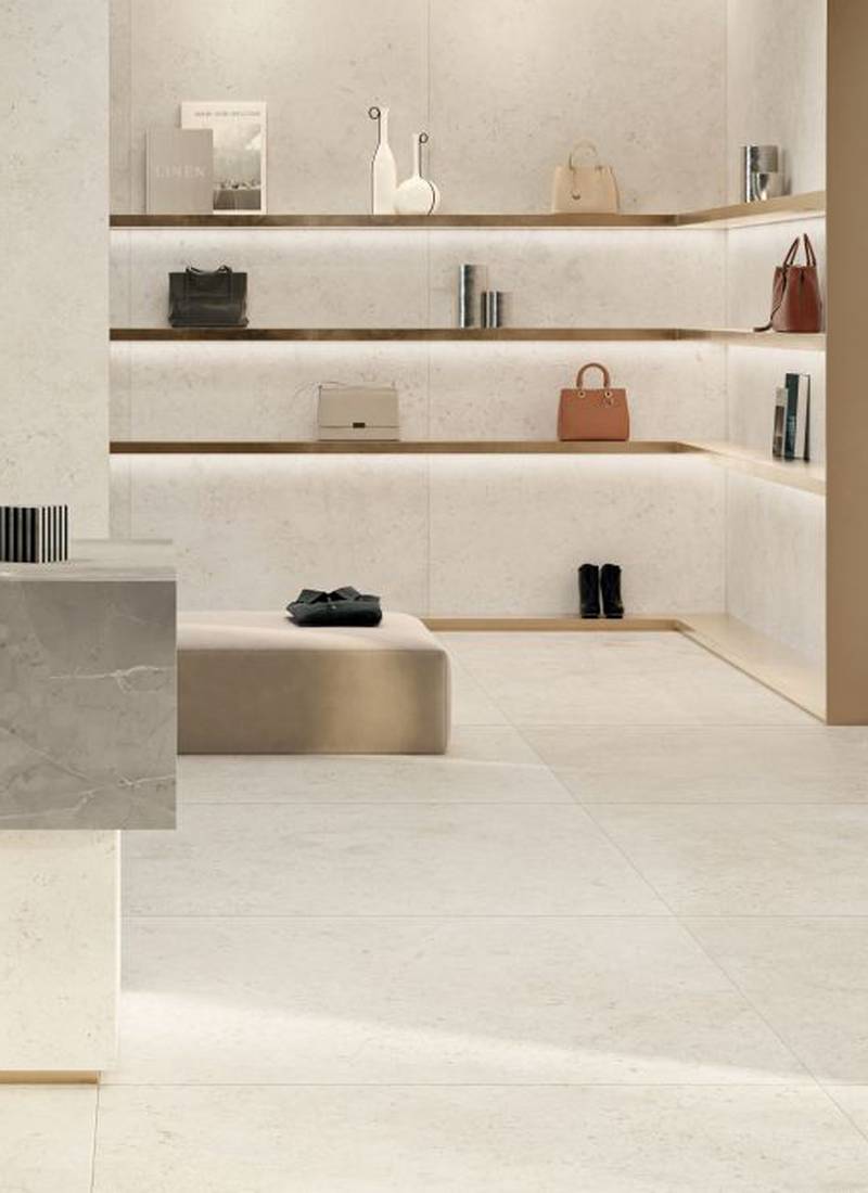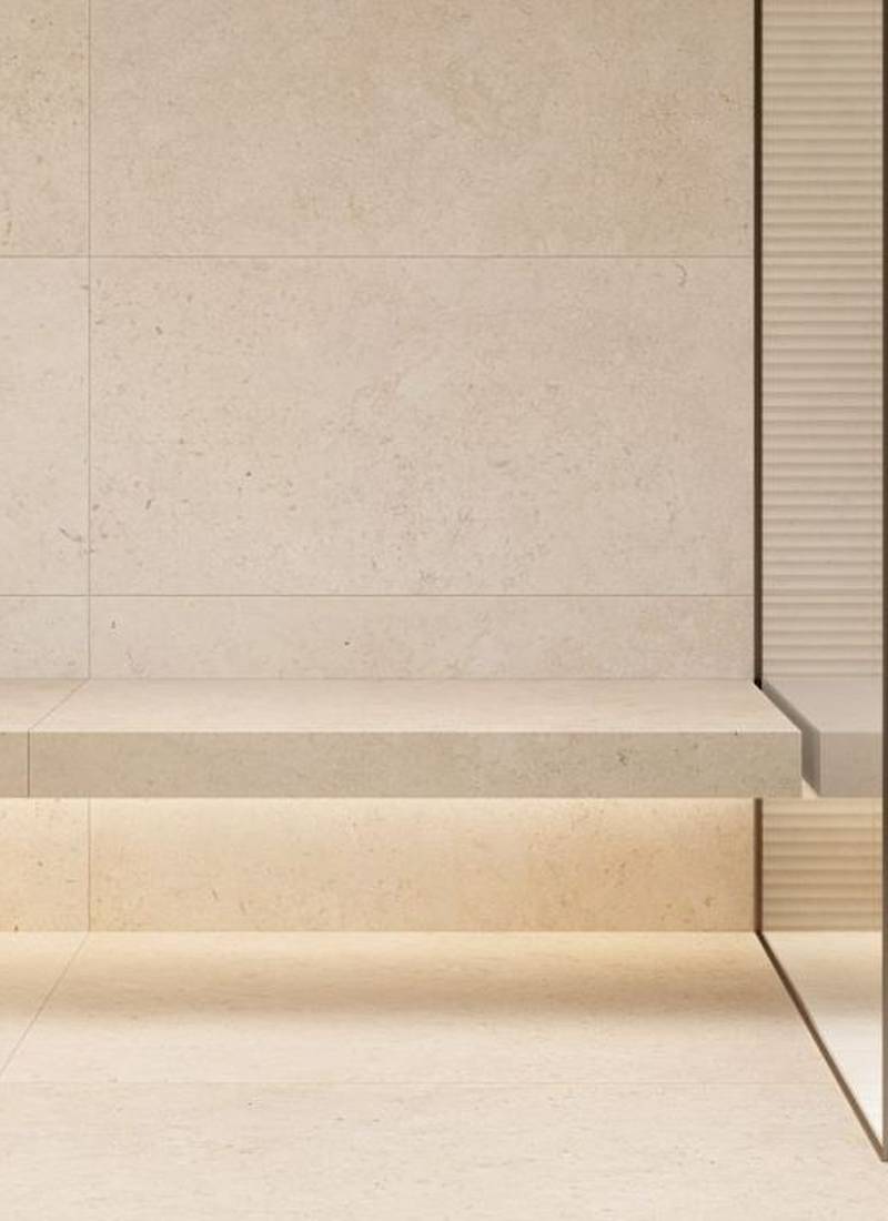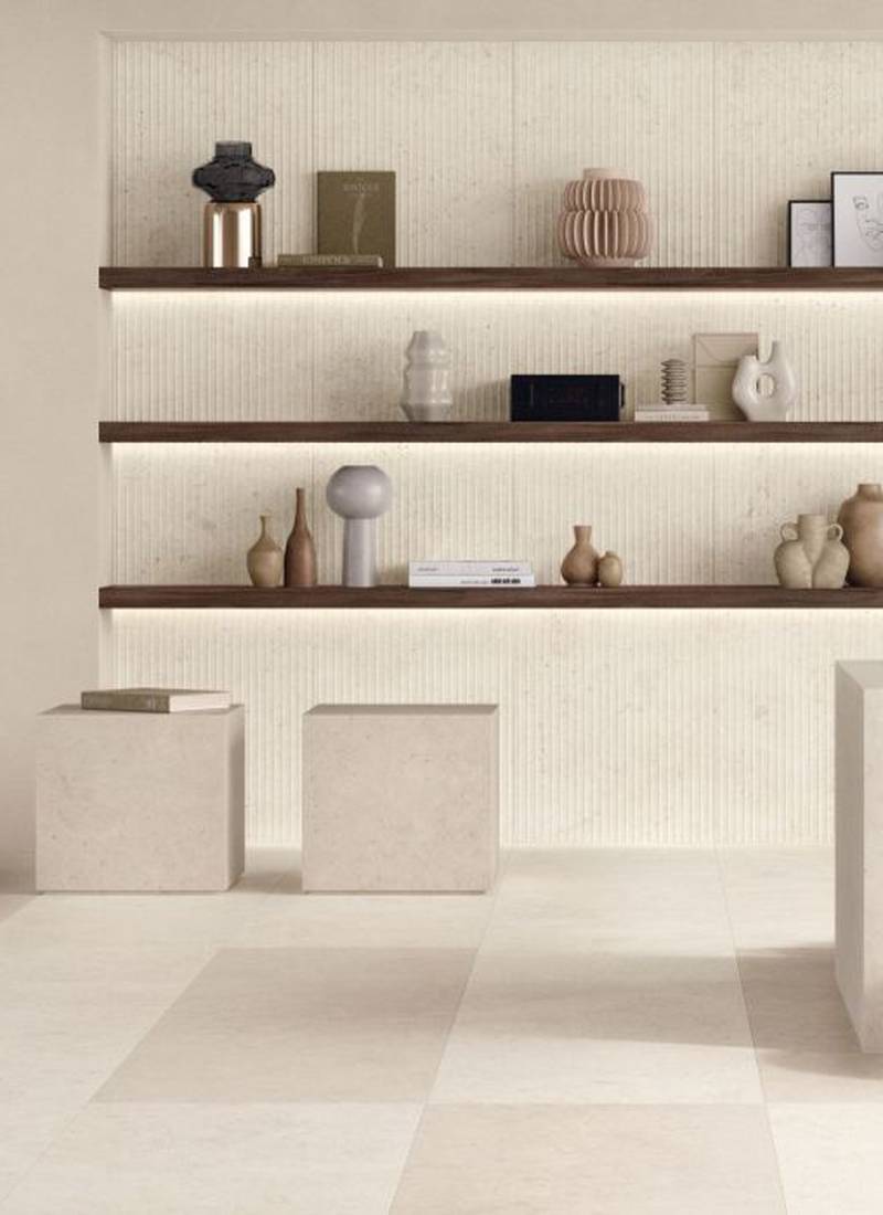 La matière du grès cérame effet pierre calcaire devient lumière